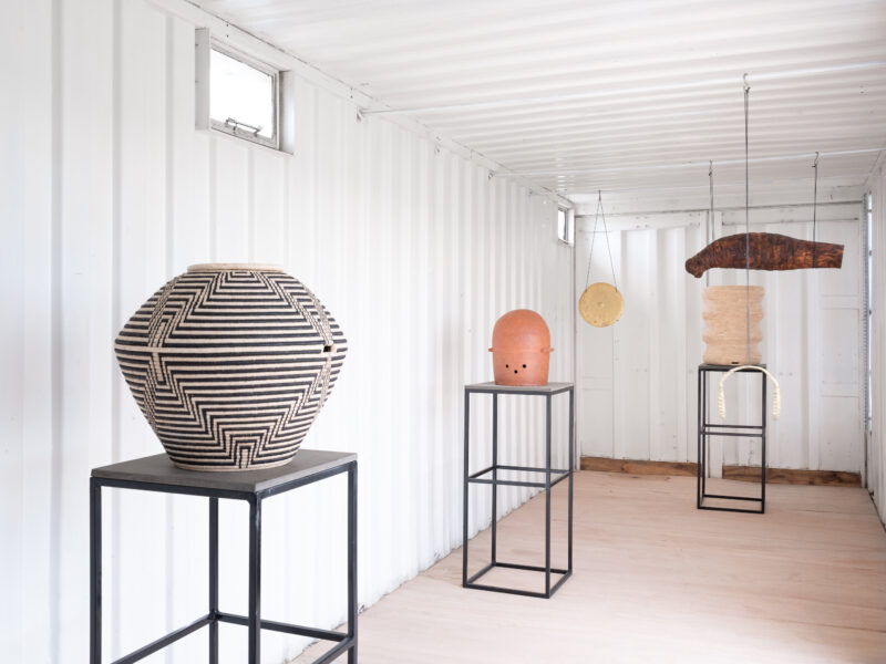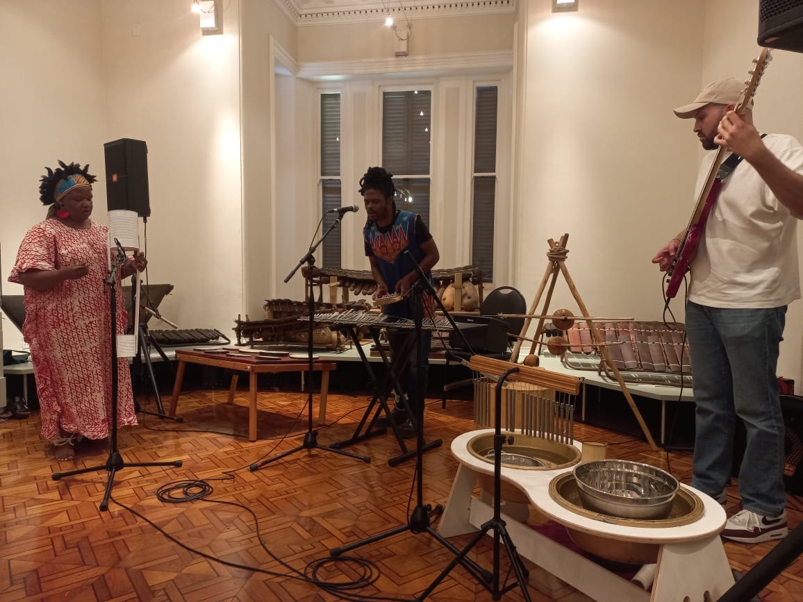 | Hiving & HUMing: Material Realms & Sonic Immersions, 2023-2025 The project is an 18-month, research-driven initiative in collaboration with beekeeper and gardener Thembalezwe Mntambo. It centres on bees’ logics, temporality, and imperatives in support of their agency, and examines the cyclical relationships and sensing capacities that exist between bees, plants, and humans.Using swarm logic, interdisciplinary collaborations were oriented toward the development of new insights. Research into alternative hive-making was undertaken to realise sculptures designed to house bees, with a focus on their needs.Considering bees’ non-verbal communication, we explored what types of sounds could be created within their frequency range and what instrumentation might be appropriate for conversing with them. This led to the Kirby Collection of Musical Instruments at the College of Music at the University of Cape Town.The final exhibition and interdisciplinary performance programme of the project was presented at the community centre in Philippi Village, in the township of Philippi. With Amy Watson, Neil Rusch, Xolisa Bangani, Simangaliso Ngalwana, Vuyo Myoli, Klaas Vlegter, Izabeau Pretorius, Aladin Borioli, und Simnikiwe Buhlungu, Rick Deja, Sylvia Bruinders, Brandon H. Andrews, Farai Machingambi, Thobekile Mbanda, Stephen De Souza, Lisa Wilson, Meryl van Noie, Yonela Macibela, Lolwethu Sdumo, Amahle Nzama, Sisipho Wisani, Mahle Dlambula, Cameron Wilson, Tameka Petersen, Roberta Sonne, Chante Vermeulen, Angeline Masuku, Beauty Ngxongo, Sinegugu Ngxongo, Jan Aphiri. In collaboration with POOL art space, University of Cape Town and Philippi Village |